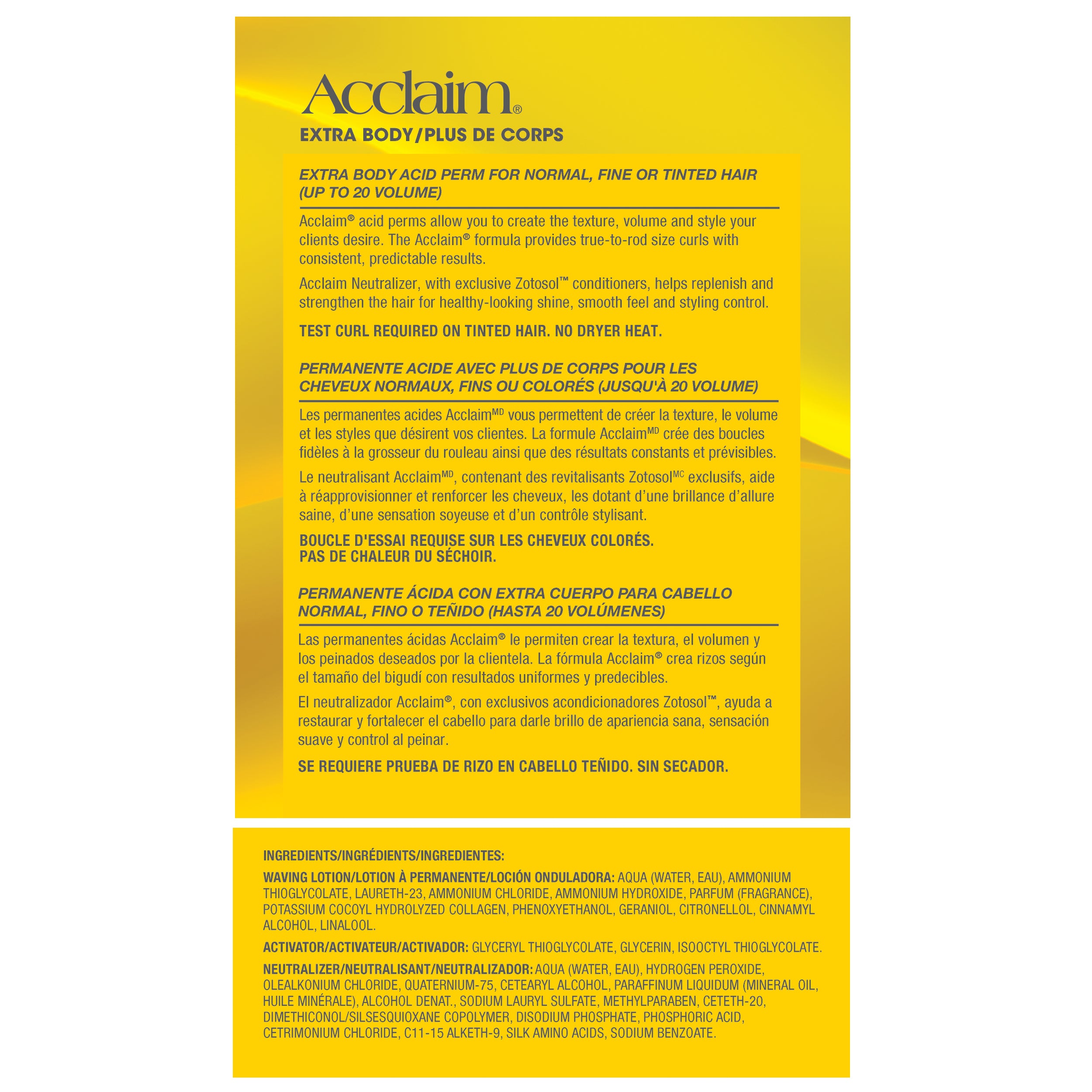 Acclaim® acid perms allow you to create the texture, volume and style your clients desire! Provides true-to-rod size curls with consistent, predictable results.