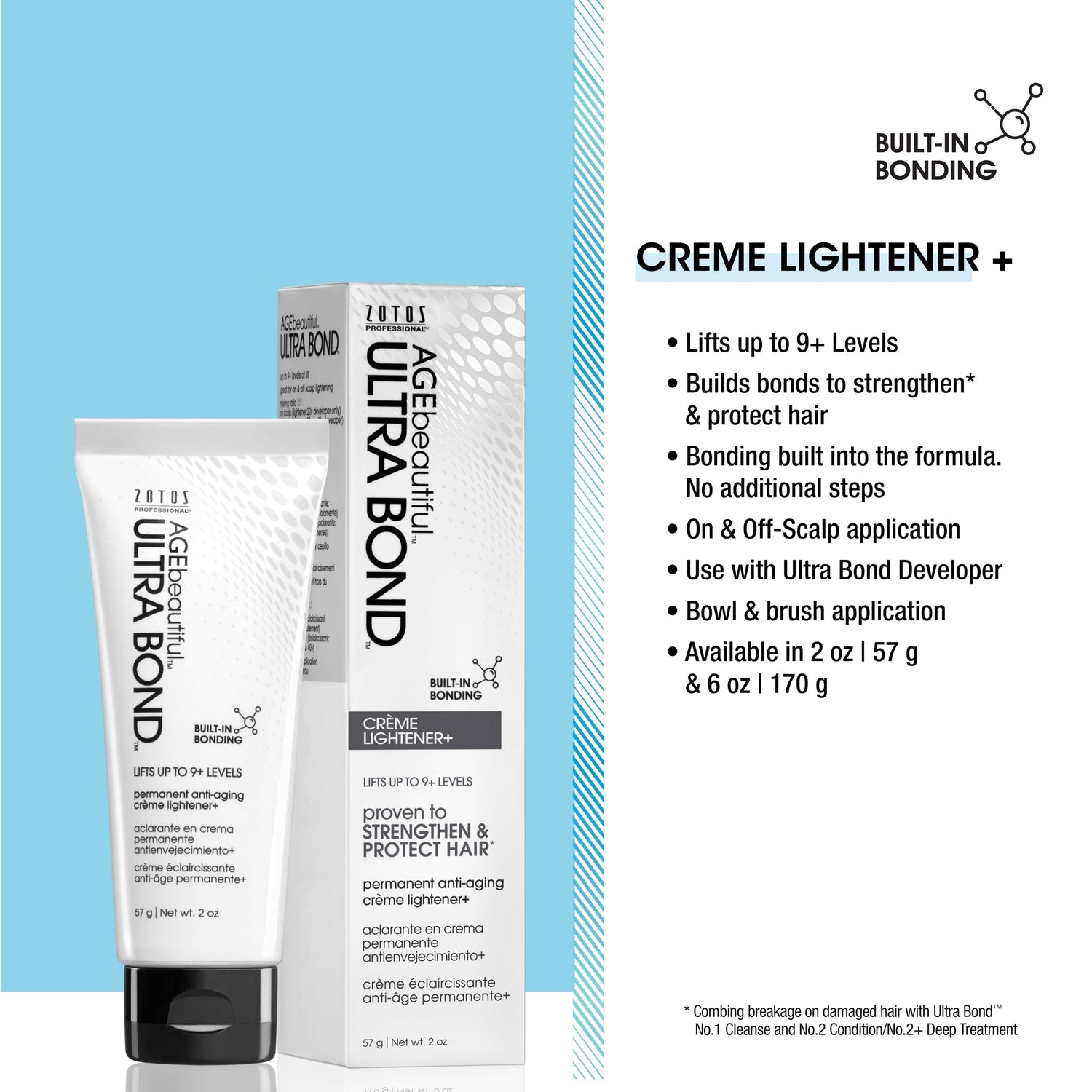 Mixing Ratio (1:1) for both On-Scalp and Off-Scalp application. Mix equal parts of 2 oz. Ultra Bond Creme Lightener+ to 2 oz. Ultra Bond Developer.