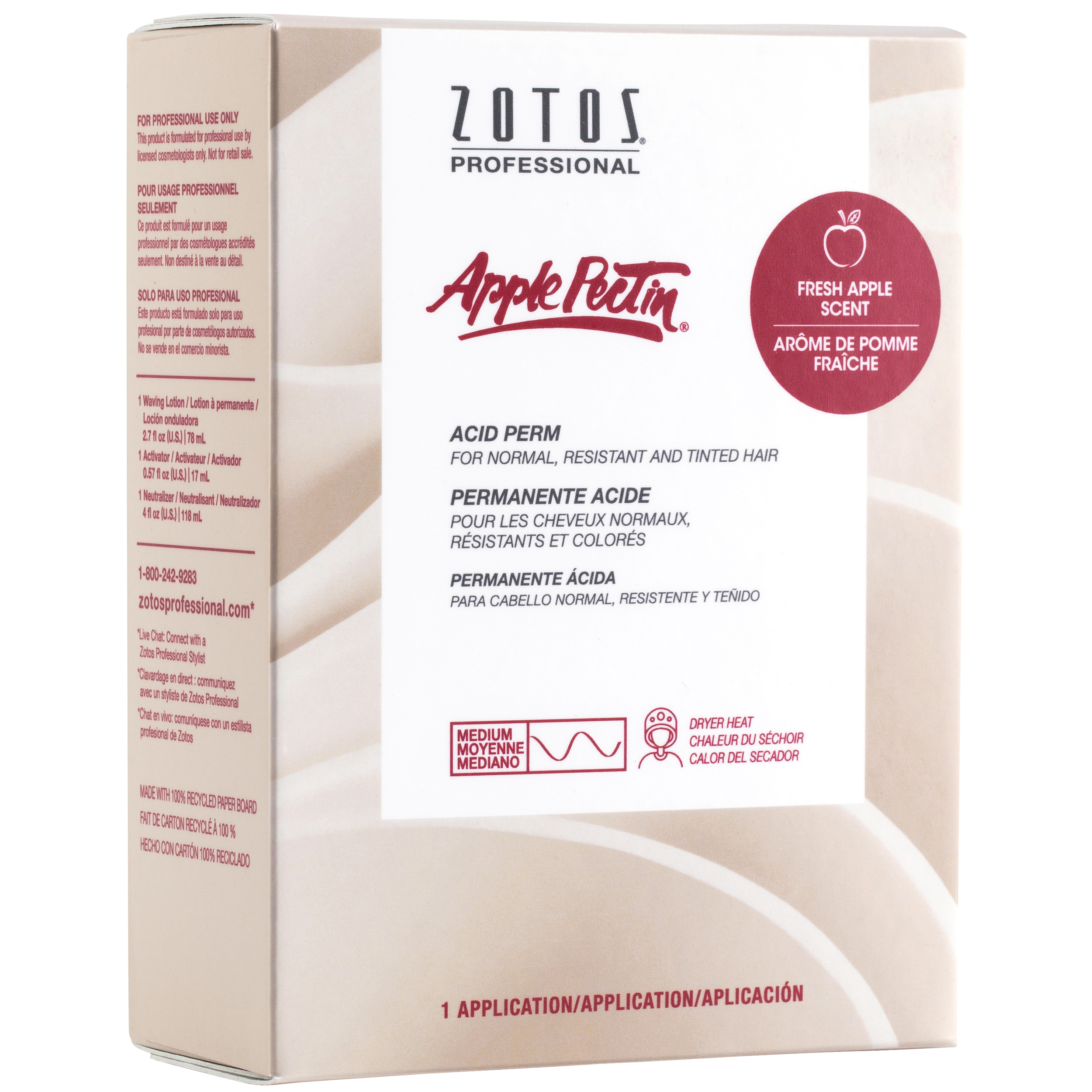 Apple Pectin® Perm leaves curls manageable and shiny. Activator with collagen peptides helps maintain hair strength.What Makes it Special: Dryer Heat Required. Conditioning Neutralizer with Fresh Apple Scent.Apple Pectin® (Acid Perm)• Curl Type: Medium Curl• Hair Type: Normal, Resistant and Tinted Hair (up to 20 volume)