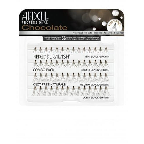 Bite into the This Chocolate Collection version of our popular Individuals Combo pack! It makes it so easy to customize for your highly specific beauty needs. The kit features knot-free bases and a flirty, flared effect. The combination of black and brown lash fibers creates a rich, chocolately, multi-faceted effect. - Contains 56 Knot-free individuals - Short, Medium and Long Lengths - Fine, tapered ends - Lightweight available in one package for lash customization - Apply with strip lash adhesive for one day wear or individual lash adhesive for up to 2 weeks of wear - Black and Brown...