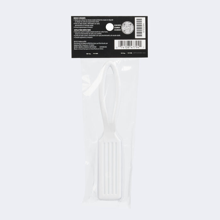Achieve impeccable fades with the BaBylissPRO Fade Brush in white. This brush is designed to remove loose hair and debris during and after haircuts, ensuring a clean and polished look for your clients. Its ergonomic design offers comfort and control, making it a valuable tool. Compliment your new brush with the BaBylissPRO® BARBERology™ 9" Clipper Comb (Black).