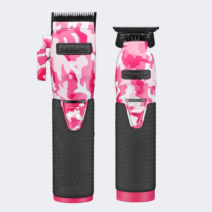This LimitedFX Collection contains a cord/cordless lithium clipper and trimmer, both equipped with high-torque, brushless engines. A perfect tool collection for cutting all hair textures with power, speed, and precision. Features & Benefits BaBylissPRO® LimitedFX Pink Camo Metal Lithium Clipper Black Graphite Fade Blade (FX8010B) — Zero-Gap Adjustable 5-Position Locking Stretch Taper Arm More Efficient and Quieter High-Torque Brushless Motor — 6,800 RPM 3,300 mAh Lithium-Ion Battery — Up to 2 Hours of Runtime All-Metal Housing with Textured Rubber Grip USB-C and FXCORD Compatible Cord/Cordless Dual Voltage BaBylissPRO® LimitedFX Pink Camo Metal Lithium Trimmer Black Graphite Deep-Tooth 2.0 mm T-Blade...