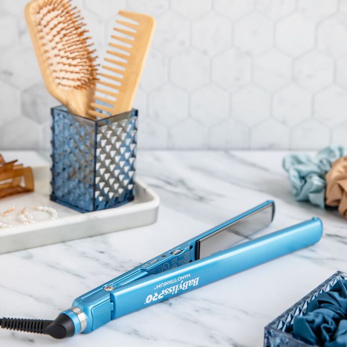 The BaBylissPRO® Nano Titanium™ line of professional tools features a unique combination of the latest and most effective technologies. Ultra-lightweight and durable tools let you easily switch between smooth and shiny styles and long-lasting radiant curls. Features & Benefits EXTENDED BARREL CURLING IRON: 2” longer barrel than traditional curling barrels, perfect for long hair 5 easy to read digital temperature settings up to 430°F, for all hair types Limited 2-year warranty ULTRA-THIN FLAT IRON: Nano Titanium™ plates deliver highly efficient heat transfer and instantly smooth and shine 5" extended plates for faster straightening 50 heat settings – up to 450°F...