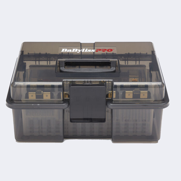 Ensure the highest standards of hygiene with the Barber Sonic Professional Disinfectant Solution Box. This solution box is designed to disinfect your grooming tools, especially BaBylissPRO® Premium Trimmer Guards, ensuring they remain clean and safe for each client. Maintain a professional and sanitary grooming environment with this essential accessory. It is the first to market barber disinfectant solution box with sonic vibrations, *patent pending.