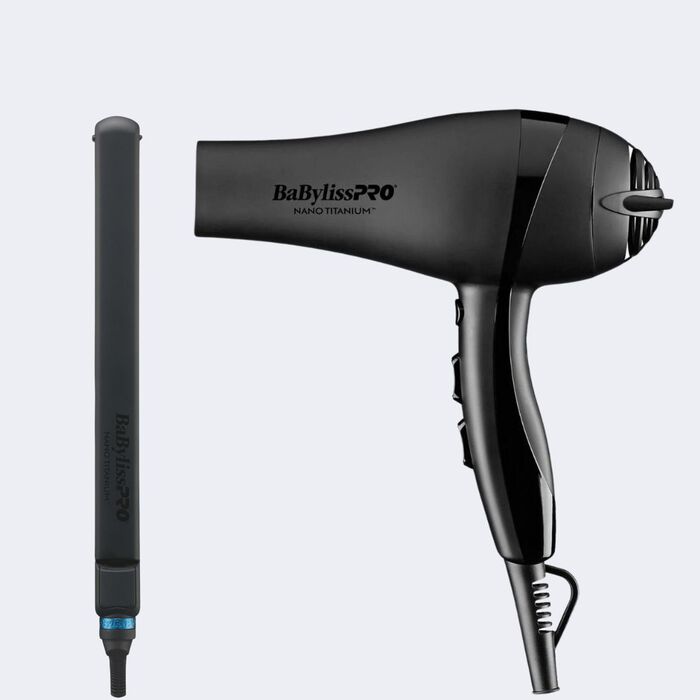 BabylissPro Nano Titanium 5548 Dryer & 1" Ultra Thin Flat Iron - Matte Black (BNTPPMB415)