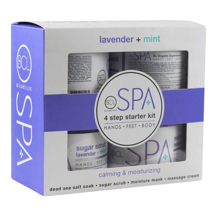 Relax in the luxury of an organic spa experience with one complete system. Lavender calms the mind while moisturizing Mint soothes dry, stressed skin. Each kit includes: