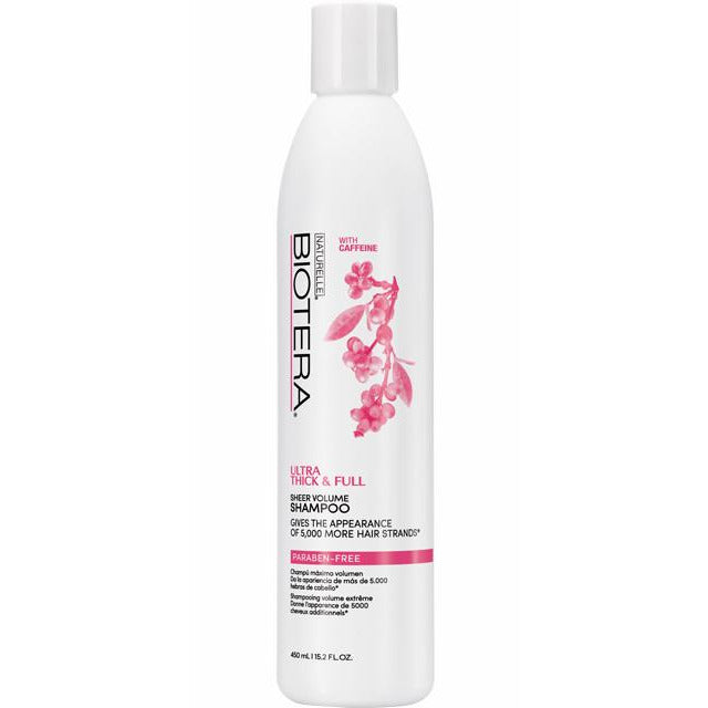 Biotera Ultra Thick & Full Sheer Volume Shampoo provides gentle, weightless cleansing, leaving hair feeling thicker and fuller and giving the appearance of 5,000 more hair strands