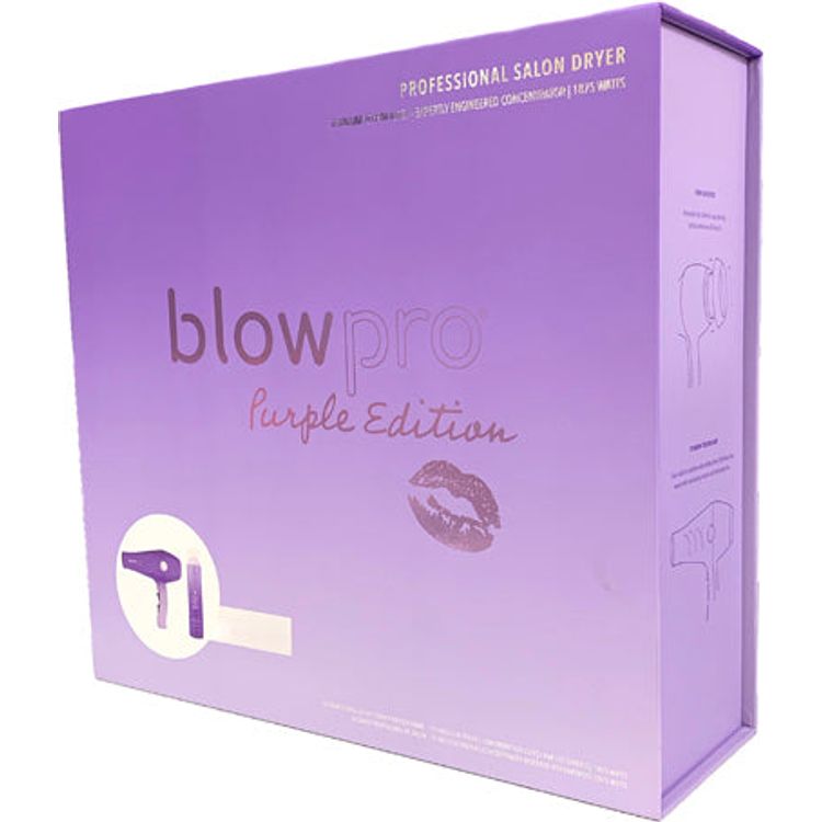 Like all professional dryers in the Blowpro family, the Purple Edition Dryer shakes the blowout industry with its unique features, outstanding durability, and expert performance. This professional titanium dryer boosts the art of blow drying with its fun outwards finish along with incredible inner features. Professional features: Titanium Technology // produces even heat distribution & fast drying time | Whit Light Technology // to cleanse dryer of bacteria and buildup | 1875 Watts | Removable Filter // for easy cleaning | Cool Shot Button |AC Motor // Durable, long lasting motor with 1000 hours of life ✓ 11 ft Professional Cord ✓ 2 Year Warranty Watts. Blow Back Time Volumizing and Finishing Spray comes included