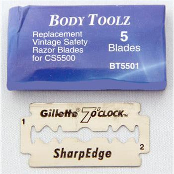 Gillette 7 O'Clock SharpEdge brand double edge razor blades. These double edge blades are made from stainless steel and fit the Body Toolz Vintage Shaver (CS5500). Smooth shaving experience every time.
