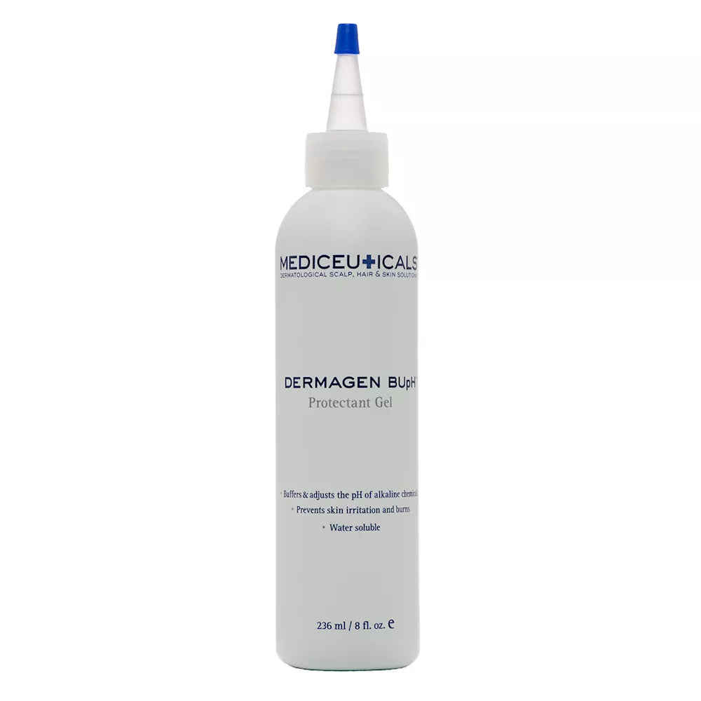 Dermagen Buph Protectant Gel 236ml Buph is a gel to protect the scalp during chemical treatments. Buph can be used on sensitive, irritated or dry scalp. Prevents skin from getting irritated when using chemicals such as hair dye or bleach. Regulates the pH value of the skin. Provides protection against scalp stains that can occur during the coloring process. Soluble in water and does not affect the chemical process. Directions: apply half inch wide band of BupH gel below the hair line, giving special attention to sensitive areas around the ears and the back of the neck. Instructions for use Apply...