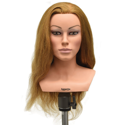 Competition manikin with pierced ears. 100% human hair, natural 23" blonde hair and natural neck. Perfect for competitions.