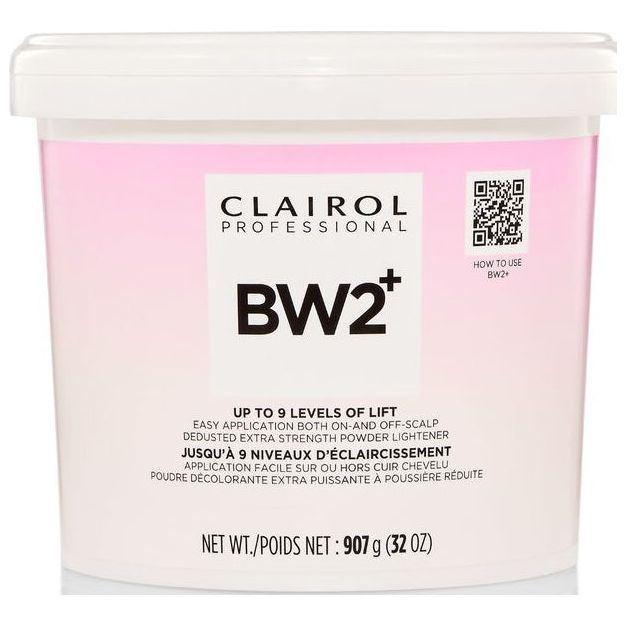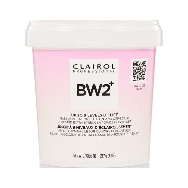BW2+ Dedusted, Extra Strength Lightening Powder with malic acid is your secret to quick and easy lightening. Our multi-use lightener can now be used for a range of both on and off-scalp applications including all over head lightening, highlights and balayage.Providing up to 9 levels of lift, BW2+ lifts past the brass for bright, even results. Our non-pigmented powder mixes into a creamy consistency for easy application and provides clear visibility of lift during the lightening process.