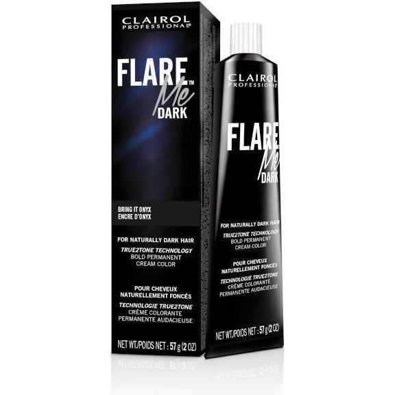 Express yourself with 7 FLARE™ Me DARK Permanent Cream Colors. True2Tone Technology delivers up to 6 weeks of bold color results on dark hair. Expressive color for the everyday artist in you.