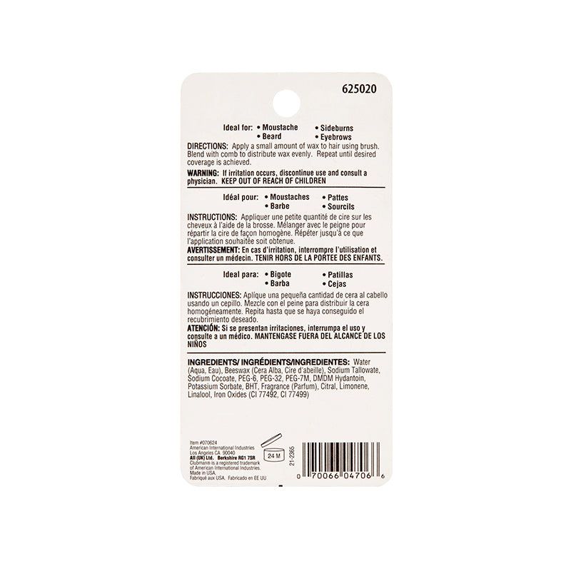 Moustache Control and Color Wax: It’s time to join the big league! Tame your unruly mustache with true sophistication using our Clubman Moustache Wax - Brown. Easy styling with a touch of color that keeps you looking sharp. No more pesky grays -we’ve got you covered! Keep It Natural: We know that you’re all about keeping it natural, just like us. The Clubman Moustache Wax - Brown contains no harsh ingredients. Gives you a natural and reliable firm hold and outstanding brown color that matches your natural facial hair without harm. Contains top quality beeswax, water, and other beneficial ingredients...