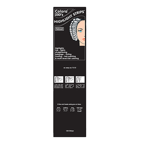 For balayage, highlighting, frosting, tinting and multi-level hair coloring. Cut preparation time in half. Each box contains 250 strips.