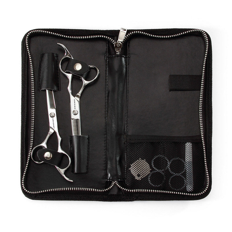 Left-Handed The LEFT-HAND Advantage is Yours! High-quality, reliable performance AND added value for left-handed professional stylists. From the success of our right-hand Shear Advantage Duo, we are excited to share our Shear Advantage Left-Hand Duo! Distinctive standards throughout the shear manufacturing process have become part of our quality control trusted hallmark. SOLID STRENGTH: High quality 440 C grade stainless steel for long-lasting durability CONSISTENT EDGE: 5.75" Ultra sharp convex edge blades stay sharper longer for a reliable performance 32T Micro-serrated teeth assist with the even hair distribution for smooth blending and finishing SEAMLESS TENSION CONTROL: Adjustable tension per preference OFFSET COMFORT GRIP: Handles are molded...