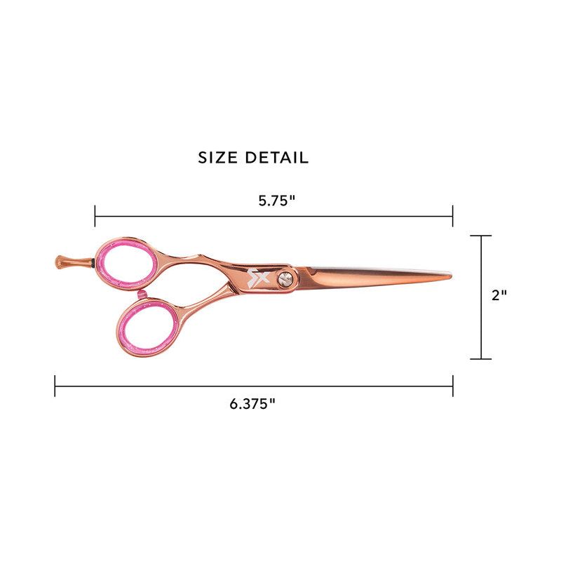 We are excited to expand our Shear Xpressions Collection with the long awaited Hey Rosie Lefty 5.75" Shear. One of our best-selling shear styles is now available to left handed shear slingers! This rose gold shear takes hints from fashion while staying true to what focused stylists require when creating/cutting hair. Japanese Stainless Steel High quality steel prolongs edge sharpness for increased durability and performance Ergonomic Offset DesignSpacing between the finger and thumb rings allows for comfort and control Comfort Closer Allows for a soft, smooth cutting stroke Removable Finger Rest Provides added support and can be easily removed Removable Finger Rings Allows for a...