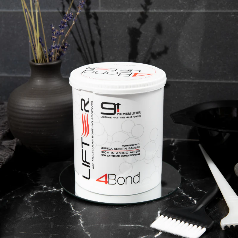 4Bond Lifter with Molecular Bonding Additives is a new dust-free formula that provides brighter and superior lightening results. Its concentrated formula is smoother with a non-drip consistency that delivers a more precise, controlled application. This powder lightener lifts up to 9 levels and will achieve various effects. From the subtlest of highlights all the way to the purest of platinum in one simple application.