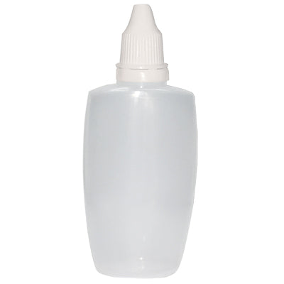 1 oz. soft squeeze plastic dropper bottle with white screw cap. Great for cuticle oil. Measures: 4"H x 1-3/4"W x 1"D.