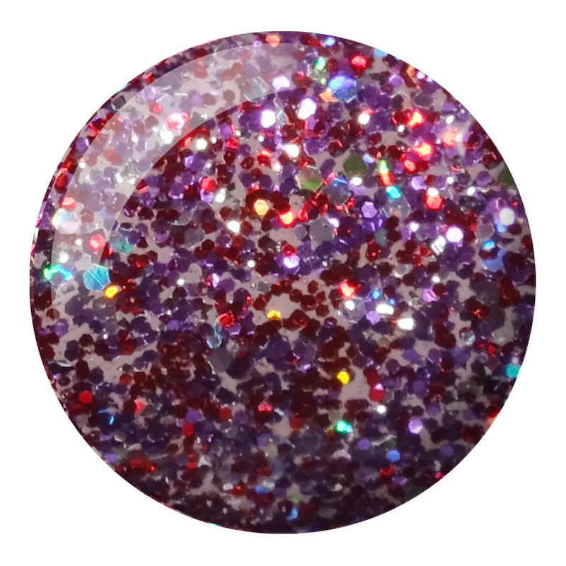 Day Party #923 — A glitter-crossed holographic purple that pops with sparks of red and silver adds a cheery, festive feel to any daytime pursuit.