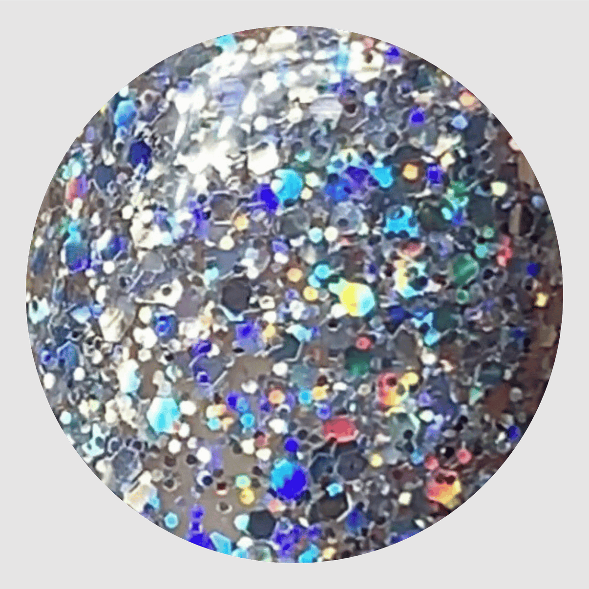 Glimmer Galaxy #022 (glittery silver) — Even in galaxies far, far away, this silver glitter with holographic sparkles is a fan favorite