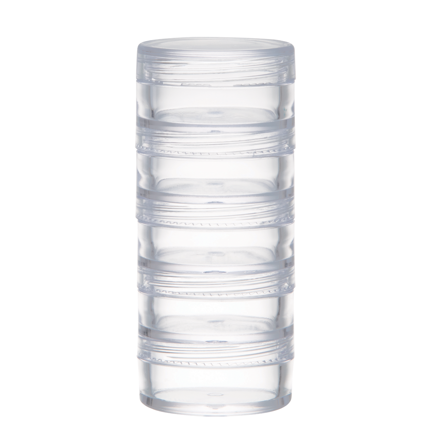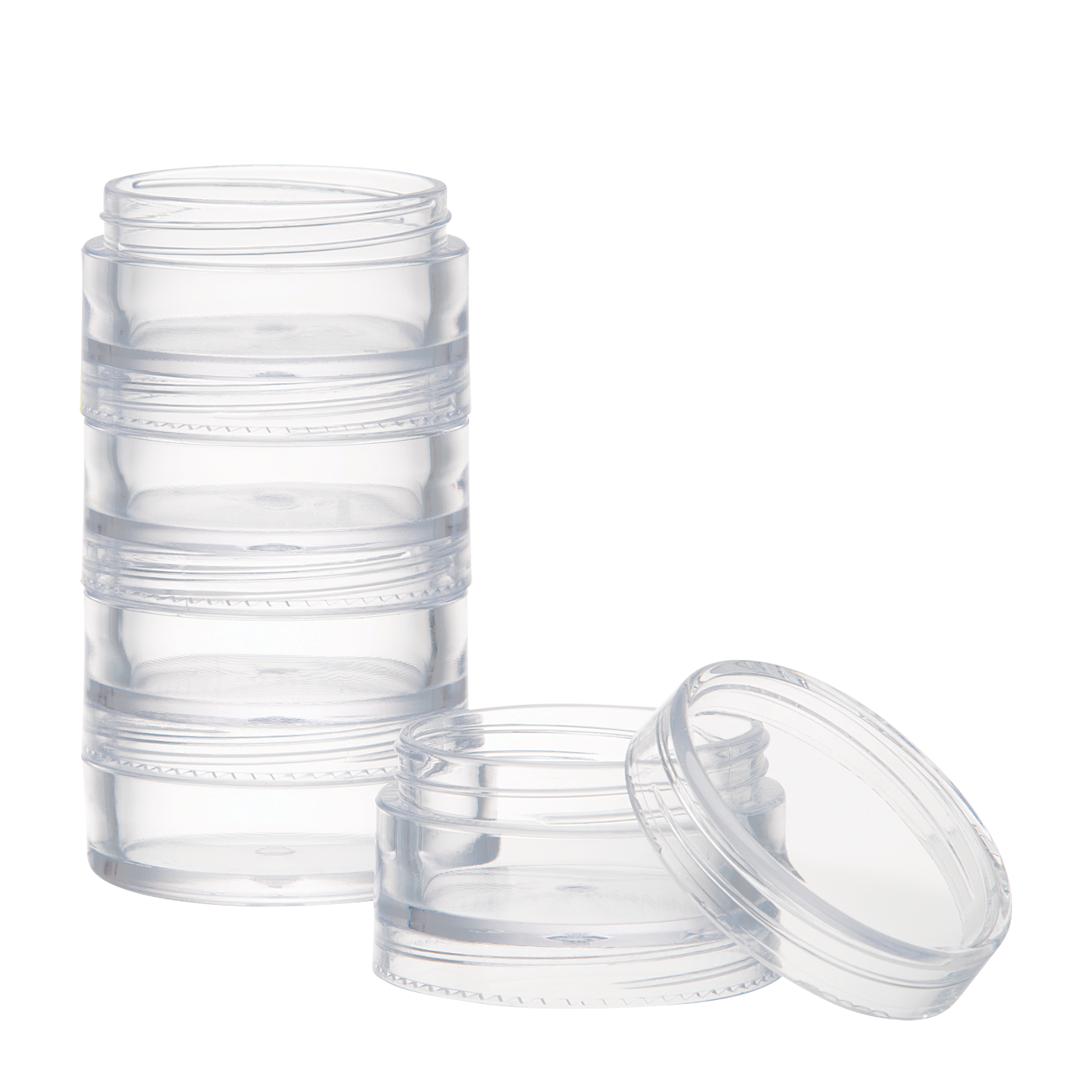 Stackable jars screw together for easy storage and are ideal for storing nail designs and powders.
