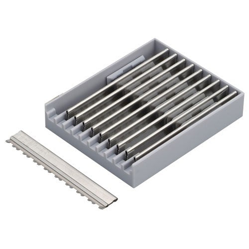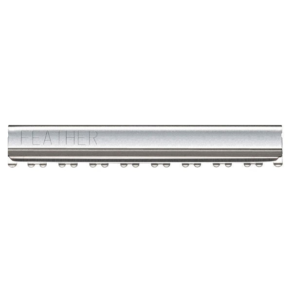 FEATHER has set the standard in manufacturing the sharpest and safest razor cutting blades in the industry. The FEATHER Texturizing Blade is unique in that it cuts hair in small sections and only removes half of the hair which creates volume and texture. The blade fits snug into the handle and does not chatter or move when cutting. The blade itself is sharp, but with the patented texturizing blade guard, it makes it safe for you and your client...meaning you won't cut yourself with this blade! The Texturizing Blade was designed as to prevent the guard from moving and exposing...