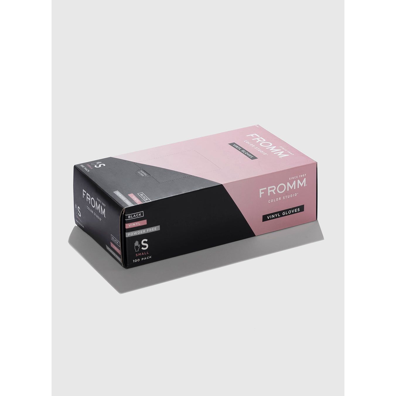Essential black powder-free vinyl gloves for protection from salon chemical processes.
