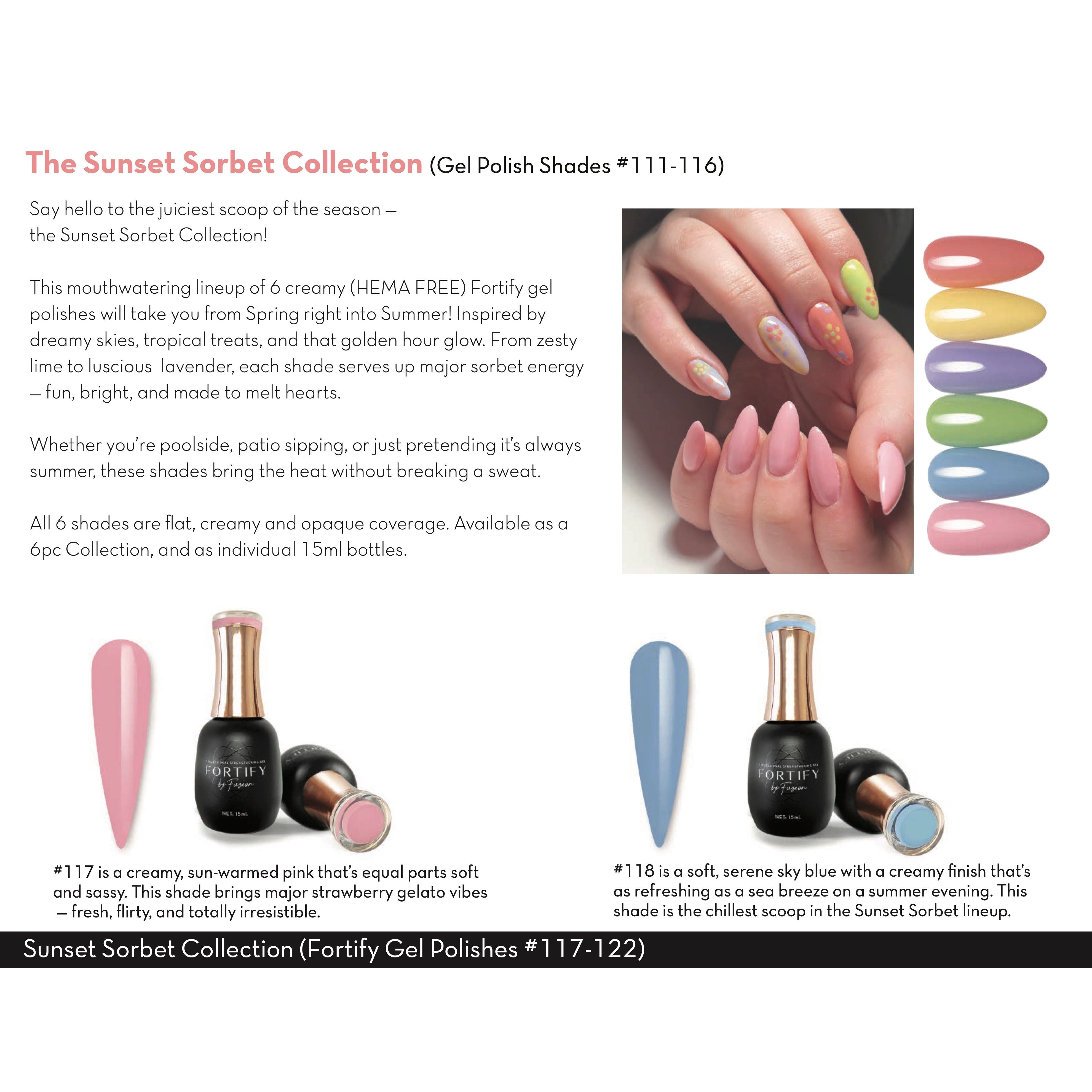 #121 is a warm, golden yellow that glows like the last rays of a summer sunset. This creamy citrus shade is sweet, sunny, and unapologetically cheerful— basically sunshine for your nails