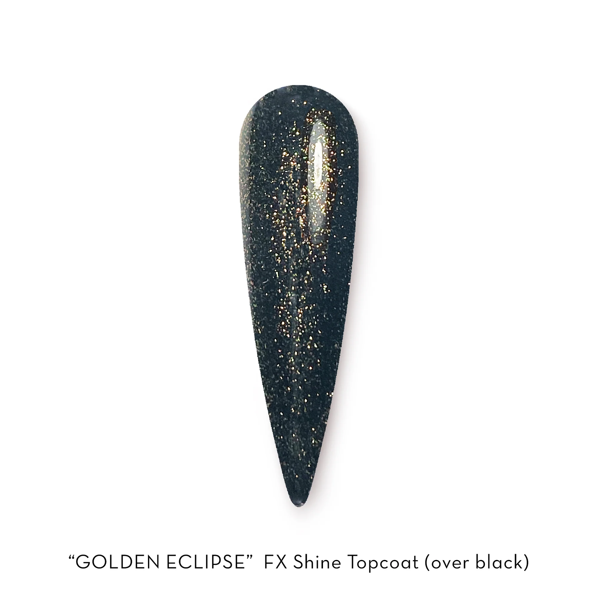 Golden Eclipse is a fine gold shimmer with a tack-free shine. It's shown over a black base in the photo.