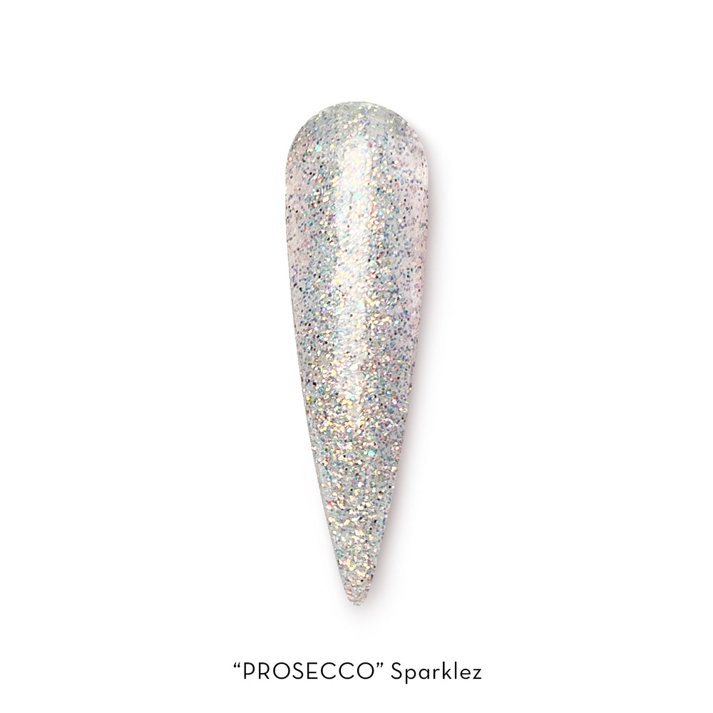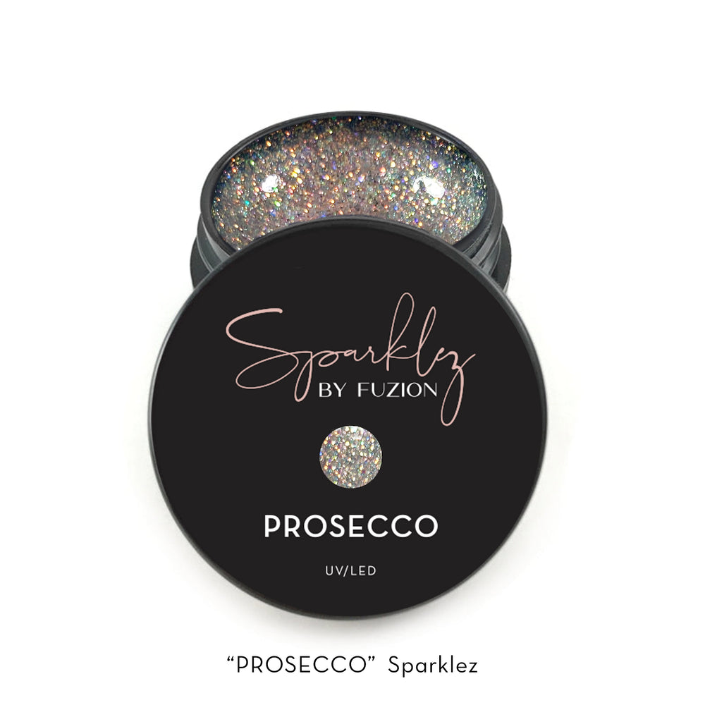 Prosecco (Sparklez): a microfine shimmer base, with gold iridescent sparkle.