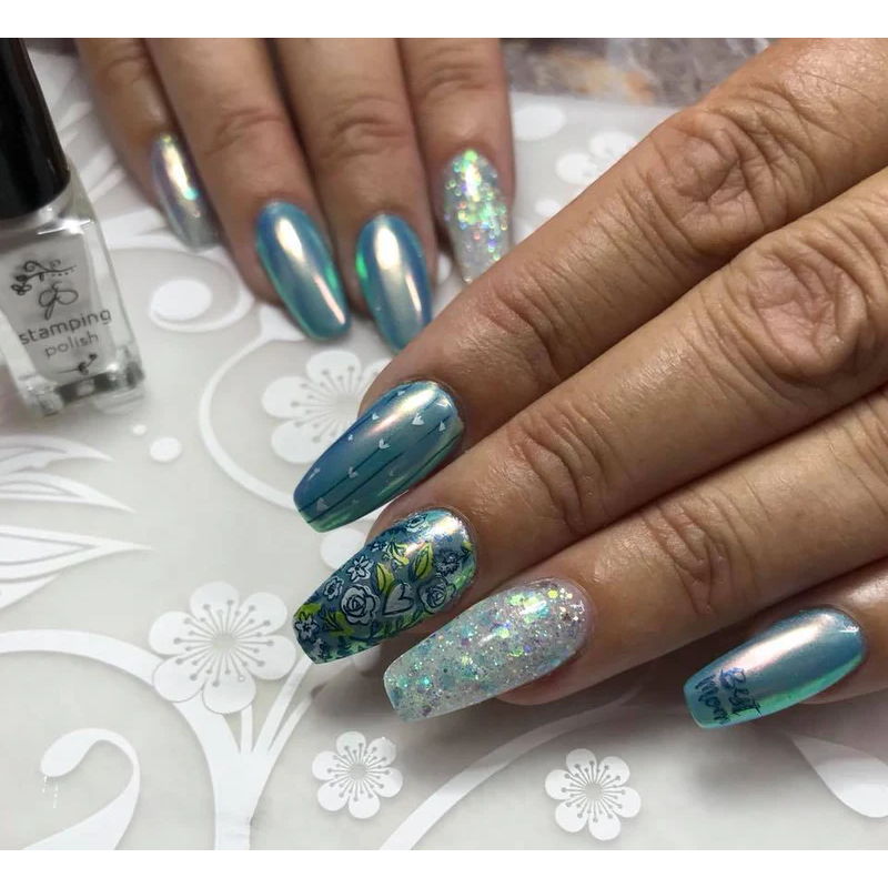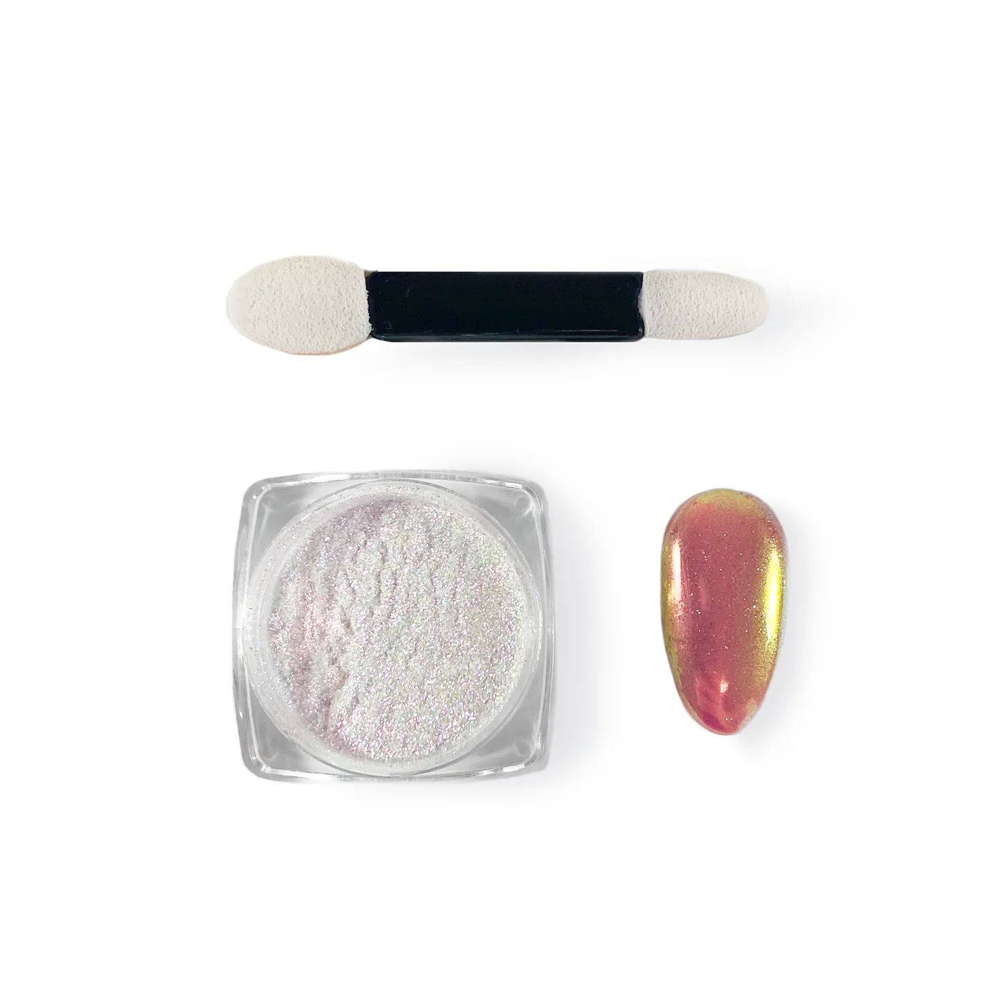 Using your choice of tool (makeup sponge, brush, or silicone tools work best) apply Fuzion Holo sparingly to your applicator and rub into partially cured product.