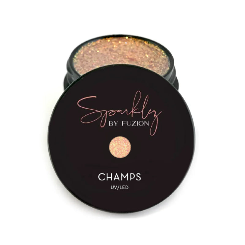 Champs is a small multi glitter nude with gold and iridescent undertones.