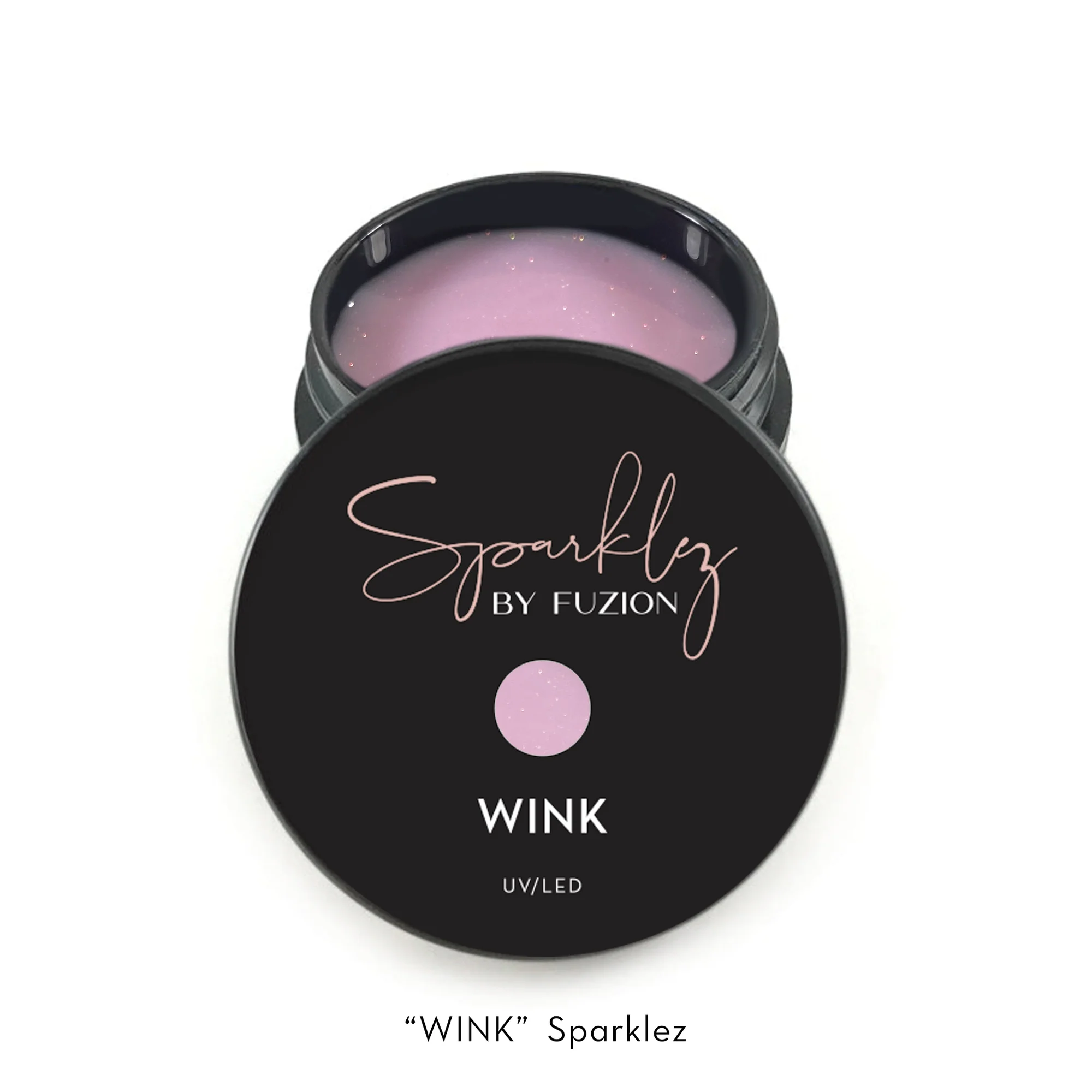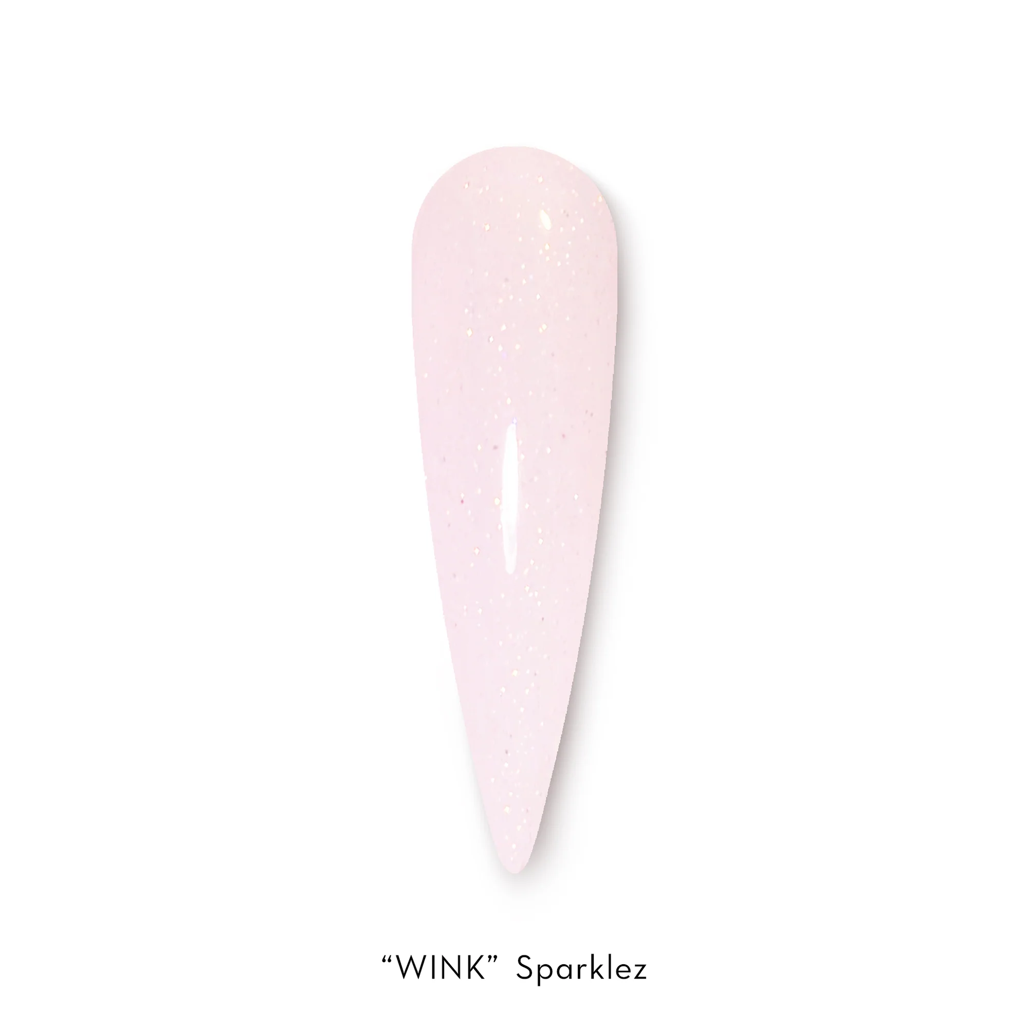 Wink (Sparklez): soft semi sheer milky white with a micro fine pink glitter.