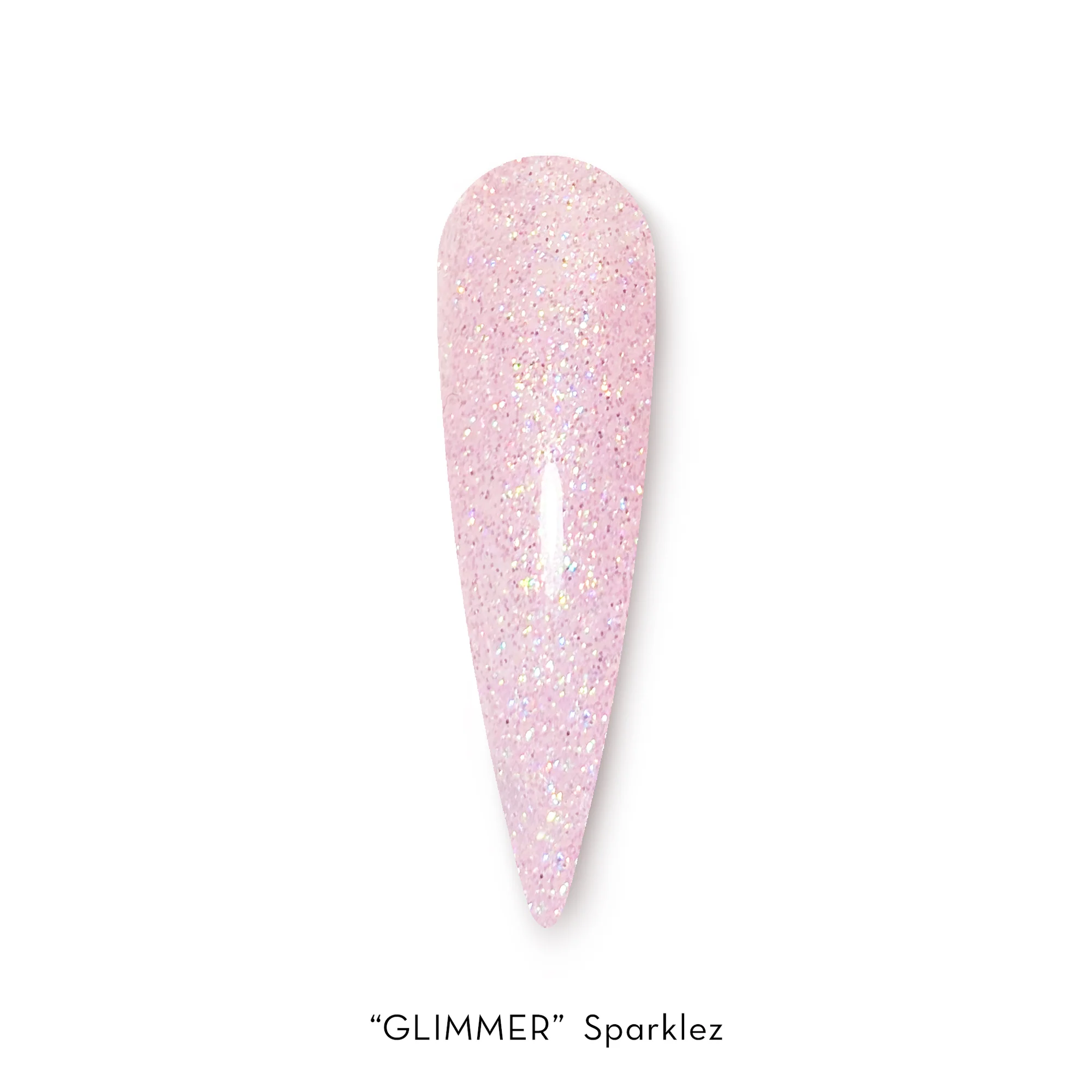 Glimmer (Sparklez): semi sheer light lavender base with micro fine iridescent glitter.