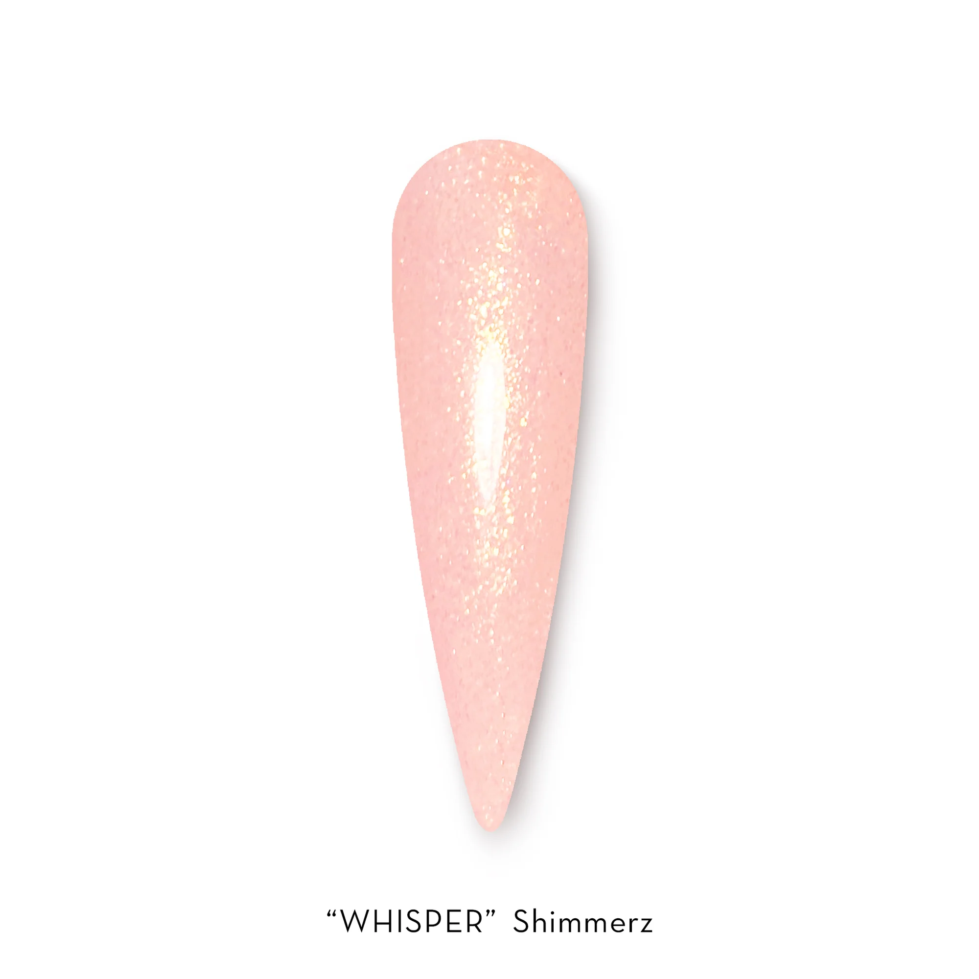Whisper (Shimmerz): soft light apricot pastel with gold shimmer.