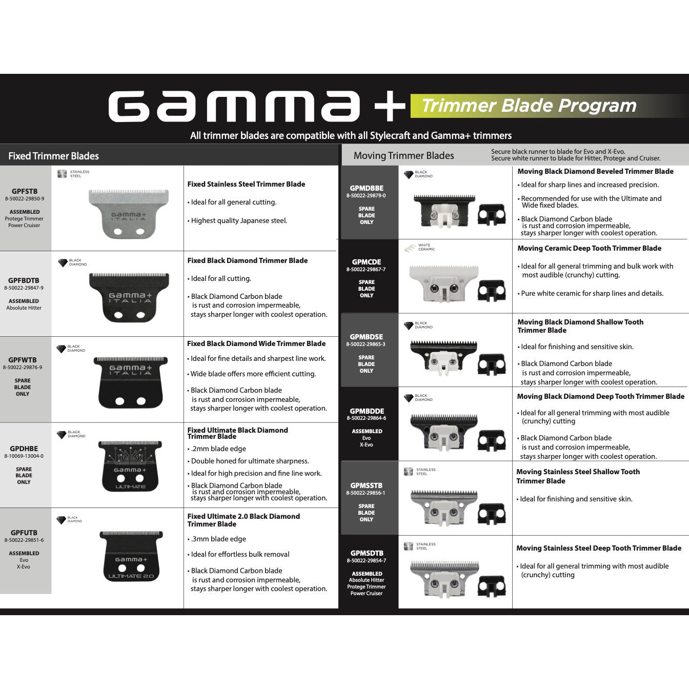 CAPABILITY - FITS GAMMA+ and STYLECRAFT Trimmers JAPANESE HIGH QUALITY stainless steel blade and deep tooth cutter is fully adjustable zero gap for the closest cut and finish ENHANCED CUTTING PERFORMANCE with super sharp tips and general trimming with most audible (crunchy) cutting FEWER BLADE CHANGES after daily use are more convenient, time saving and preferred by pros FULLY ADJUSTABLE ZERO GAP for the closest cut and finish WHEN TO CHANGE YOUR BLADE - we recommend depending on your daily use, every 1 to 4 months for maximum performance BEST STORAGE FOR TRIMMER - do not wrap cord around trimmer...