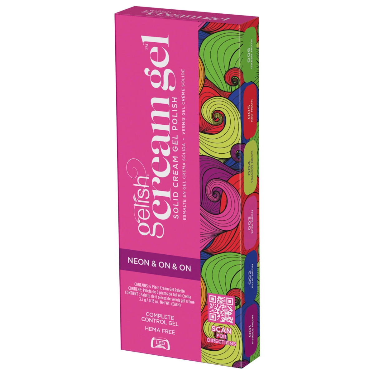 The Gelish Cream Gel Palettes give you room to play, embrace your artistry, and create your most gorgeous manicures yet! Our Solid Cream Gel never needs to be stirred and has a high gloss, true color finish. Nail Pros and Consumers alike will love that solid cream gel stays put and only moves when and where you want it to. This innovative new formula ensures there is no cuticle flooding during application and makes nail art easier than ever. The Gelish Cream Gel Palettes are LED cured, with up to 21 days of wear, and soak-off for removal.