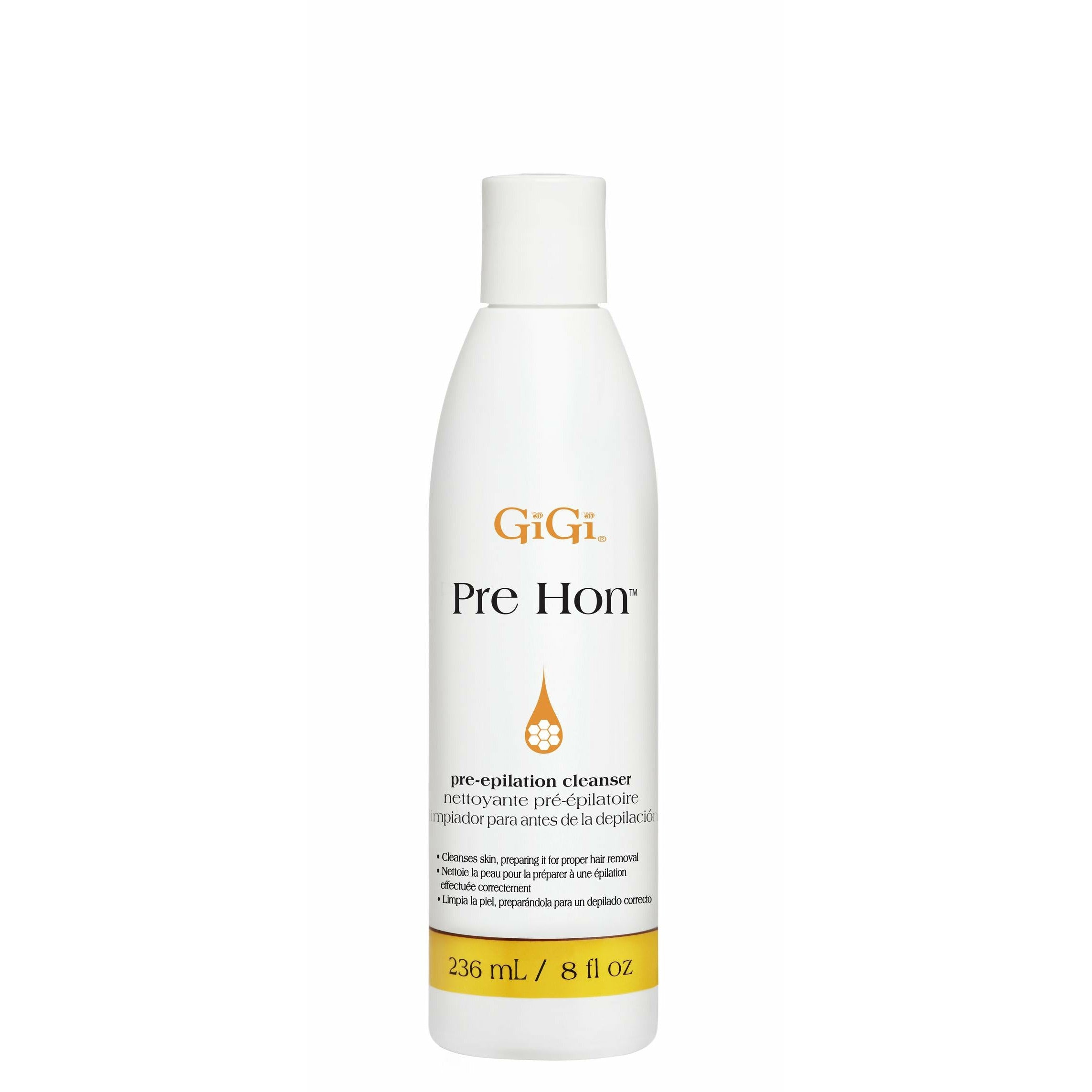 GiGi Pre Hon is the first step for effective hair removal. Formulated to cleanse the skin of make-up, deodorants and body oils, and its special cleansing ingredients help protect skin from irritation. For use with all GiGi hair removal systems.