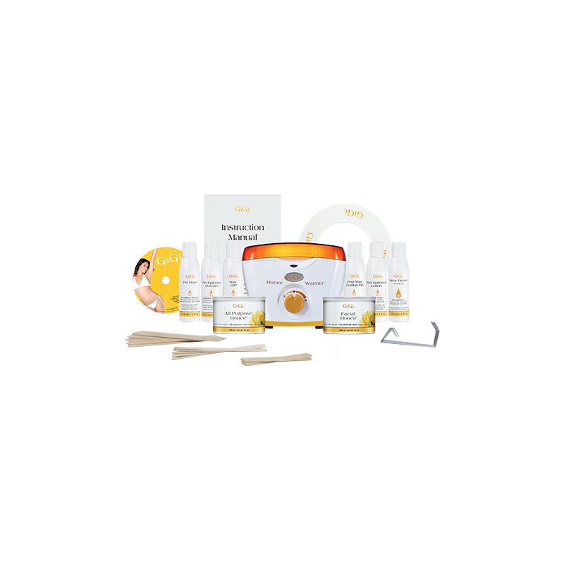 The GiGi Pro 1 Kit is a complete professional hair removal system that contains everything the professional esthetician needs. The GiGi Pro 1 Kit includes an array of lotions, cleansing products, GiGi All Purpose Honee, GiGi Facial Honee, a 14 oz. Professional Warmer and an instructional DVD.