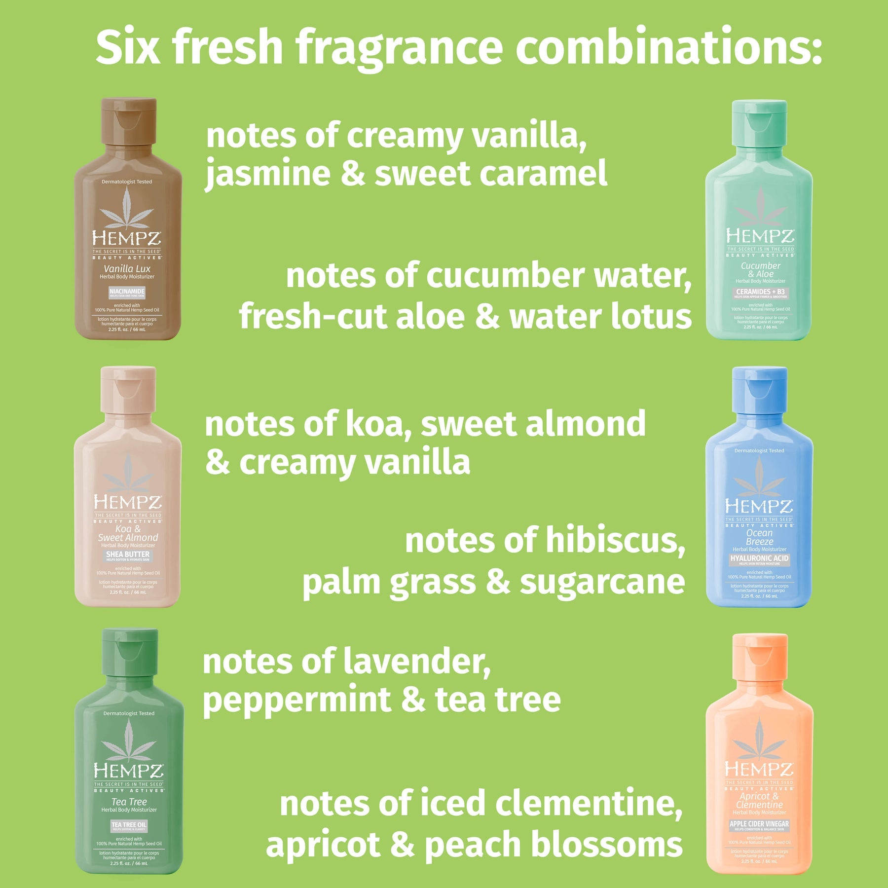 Six mini lotions (each 2.25 fluid ounces), perfect for travel and gift giving