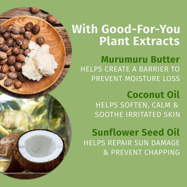 Helps calm and soothe skin with shea butter, hemp seed oil, and aloe