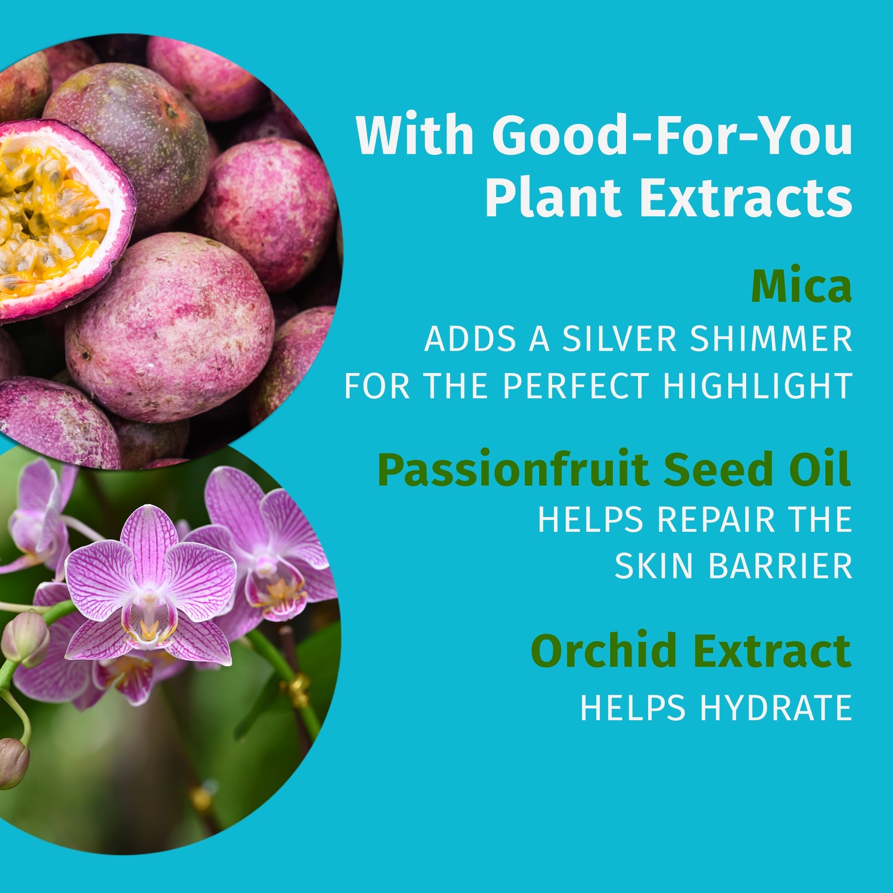 Gives skin a subtle glimmer with finely ground mica, a naturally occurring mineral