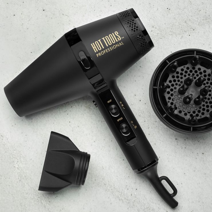 The Hot Tools Pro Artist Black Gold Infrared Ionic™ Salon Dryer has a need for speed…and for softness and shine. Designed with infrared heat technology that helps speed up your drying while maintaining moisture balance, because nobody has time for heat damage. This Hot Tools hair dryer features a pro-grade 1875 Watts for powerful airflow that delivers gentle heat for less frizz and damage. And, multiple heat settings give you customization to any hair type. Are you ready for smooth, shiny results with less drying time? Additional features include a 9-ft. professional length cord, curl-defining diffuser attachment, and a precision concentrator attachment.
