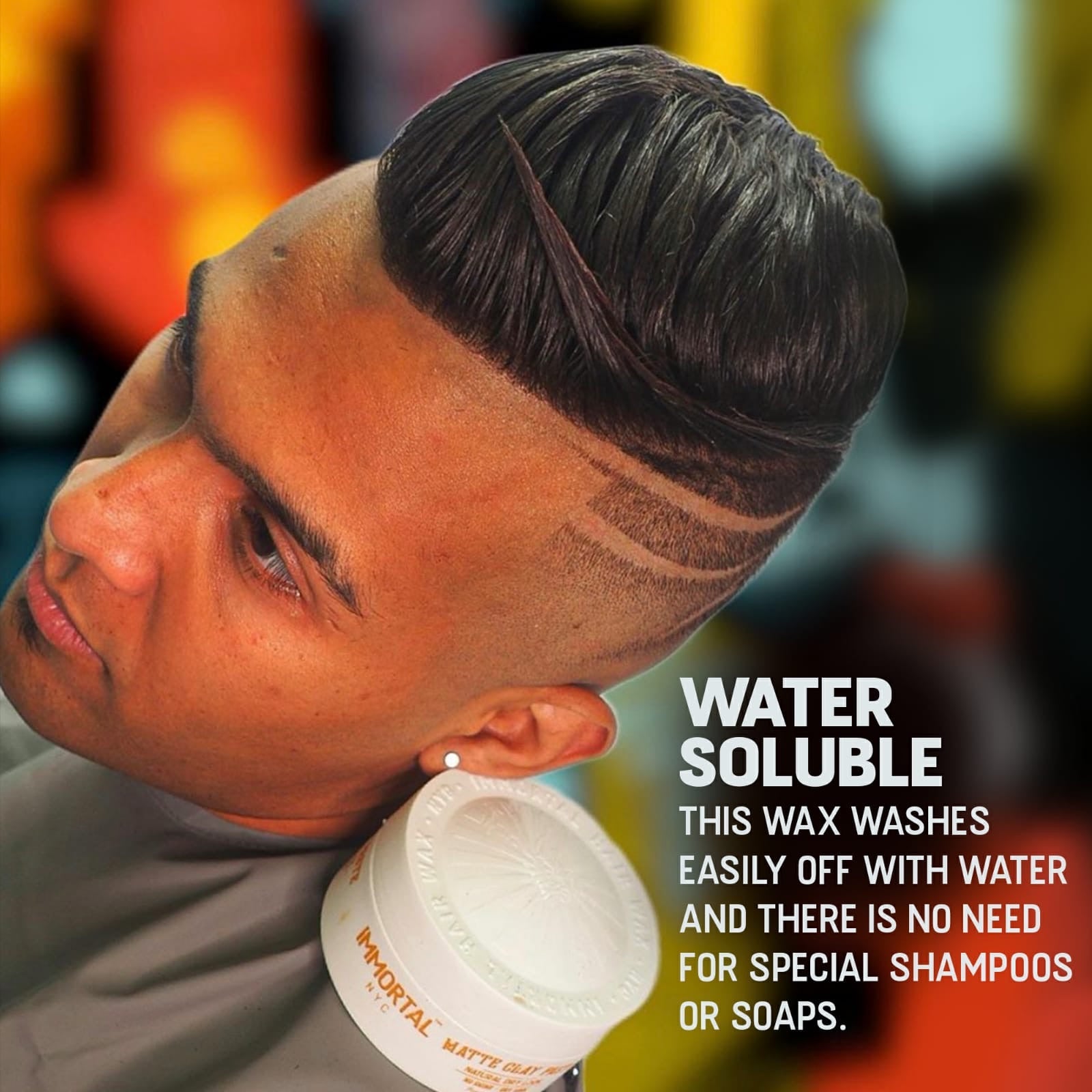 Immortal NYC Matt Look Hair Wax provides a strong hold without stiffening your hair. This special formula contains clay to give your hair a matte look and extra volume that works well for a variety of styles. This wax provides a holding ability of 7 on a scale of 1-9. 150 ml./5.07 fl. oz