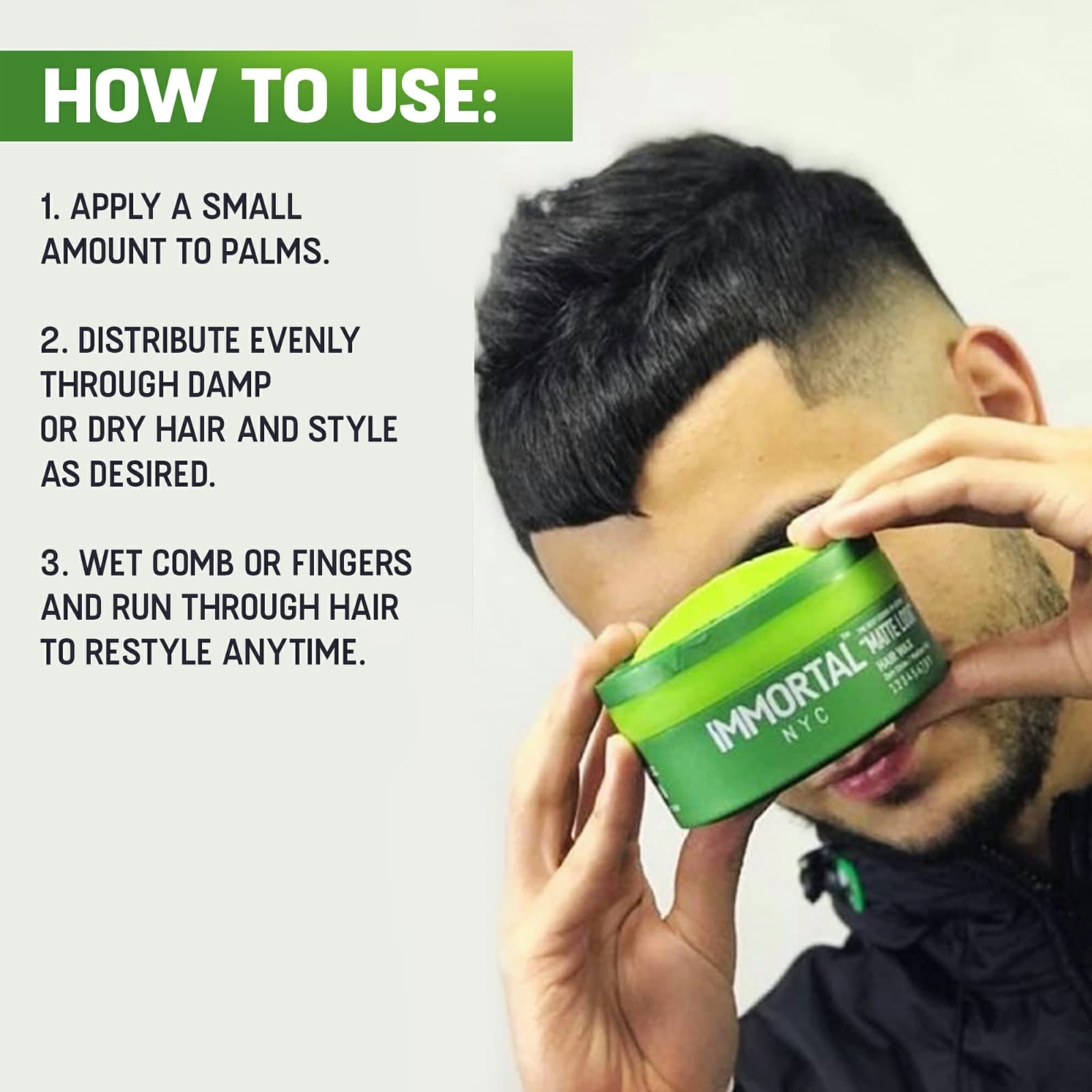 Immortal NYC Matt Look Hair Wax provides a strong hold without stiffening your hair. This special formula contains clay to give your hair a matte look and extra volume that works well for a variety of styles. This wax provides a holding ability of 7 on a scale of 1-9. 150 ml./5.07 fl. oz