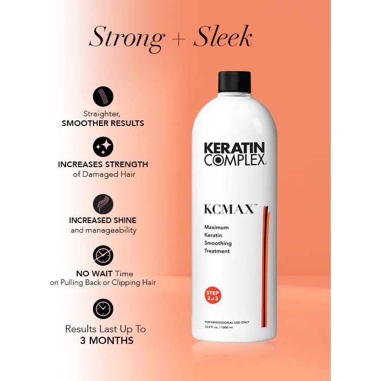 Our most powerful keratin treatment to date: KCMAX™ Maximum Keratin Smoothing System. This transformative three-step system combines a proprietary keratin blend with the most advanced smoothing technology to deliver straighter, smoother and healthier hair that lasts up to 3 months.
