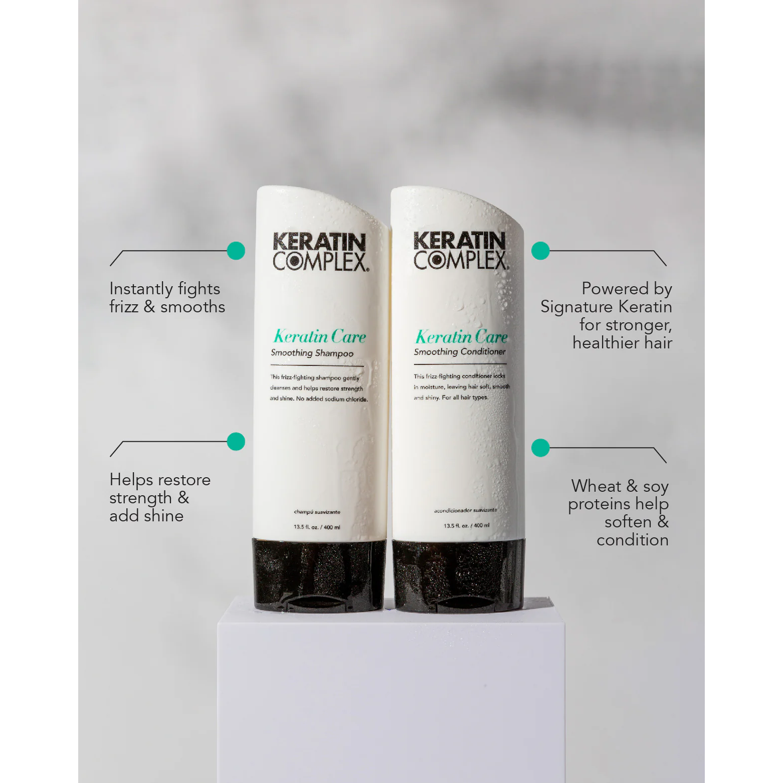 Smoothing conditioner locks in moisture and enhances softness while providing frizz control. For keratin-treated, damaged, or dry hair.