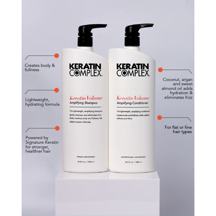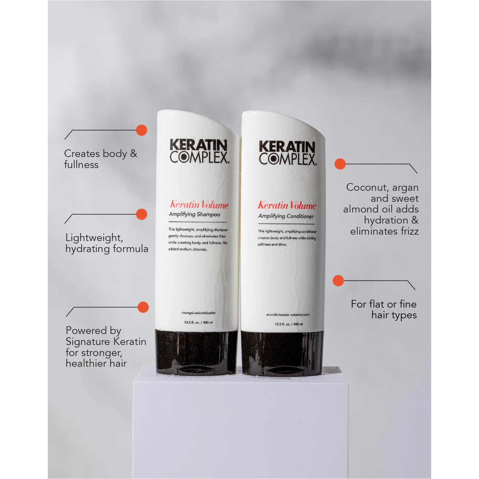 This lightweight, amplifying conditioner creates body and fullness while adding softness and shine. For all shades and hair types. Uniquely balanced, lightweight formula retains moisture while providing body and fullness for all hair types especially fine, flat hair. Signature Keratin protects, smooths and strengthens the hair. Hydrolyzed collagen prevents damage and repairs breakage in hair follicles. A blend of coconut oil, avocado oil and sweet almond oil moisturizes the scalp. Shea butter hydrates for a soft and silky finish. Pro Vitamin B5 locks in moisture for long-lasting shine. Formulated without sodium chloride to protect the longevity of Keratin Complex® smoothing treatments....