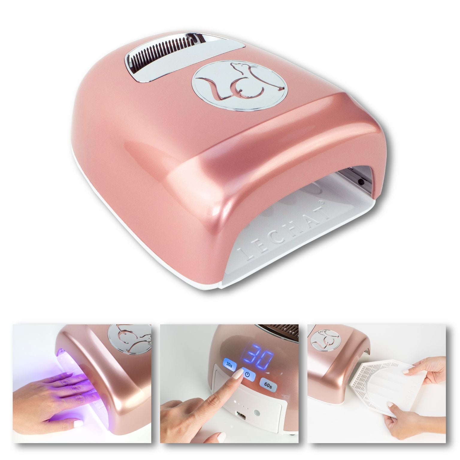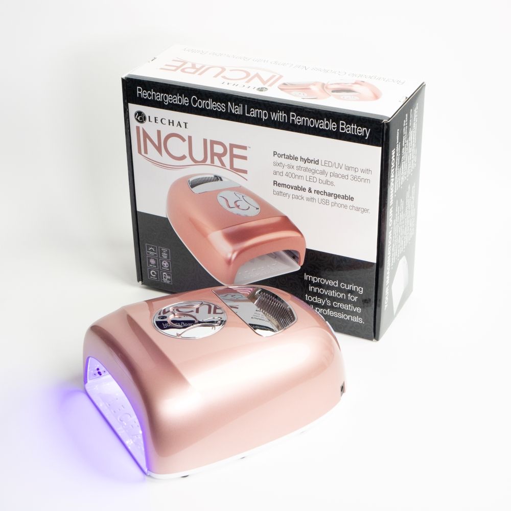 LeChat’s INCURE Portable Hybrid Nail Lamp is the newest in nail lamp technology from LeChat. Complete with easy carry handle, removable and rechargeable battery with the ability to charge other devices, and the only UV/LED layout of its kind, this grey or rose gold lamp is the perfect tool for any salon.